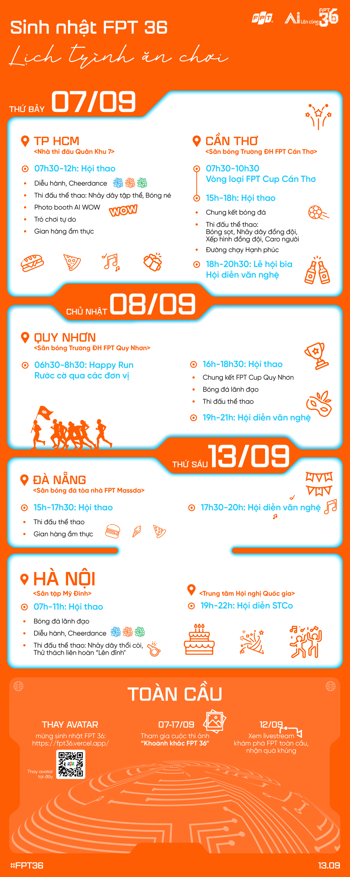"Cẩm nang bỏ túi" để người FPT không bỏ lỡ bất cứ sự kiện nào tại sinh nhật tuổi 36 của FPT.