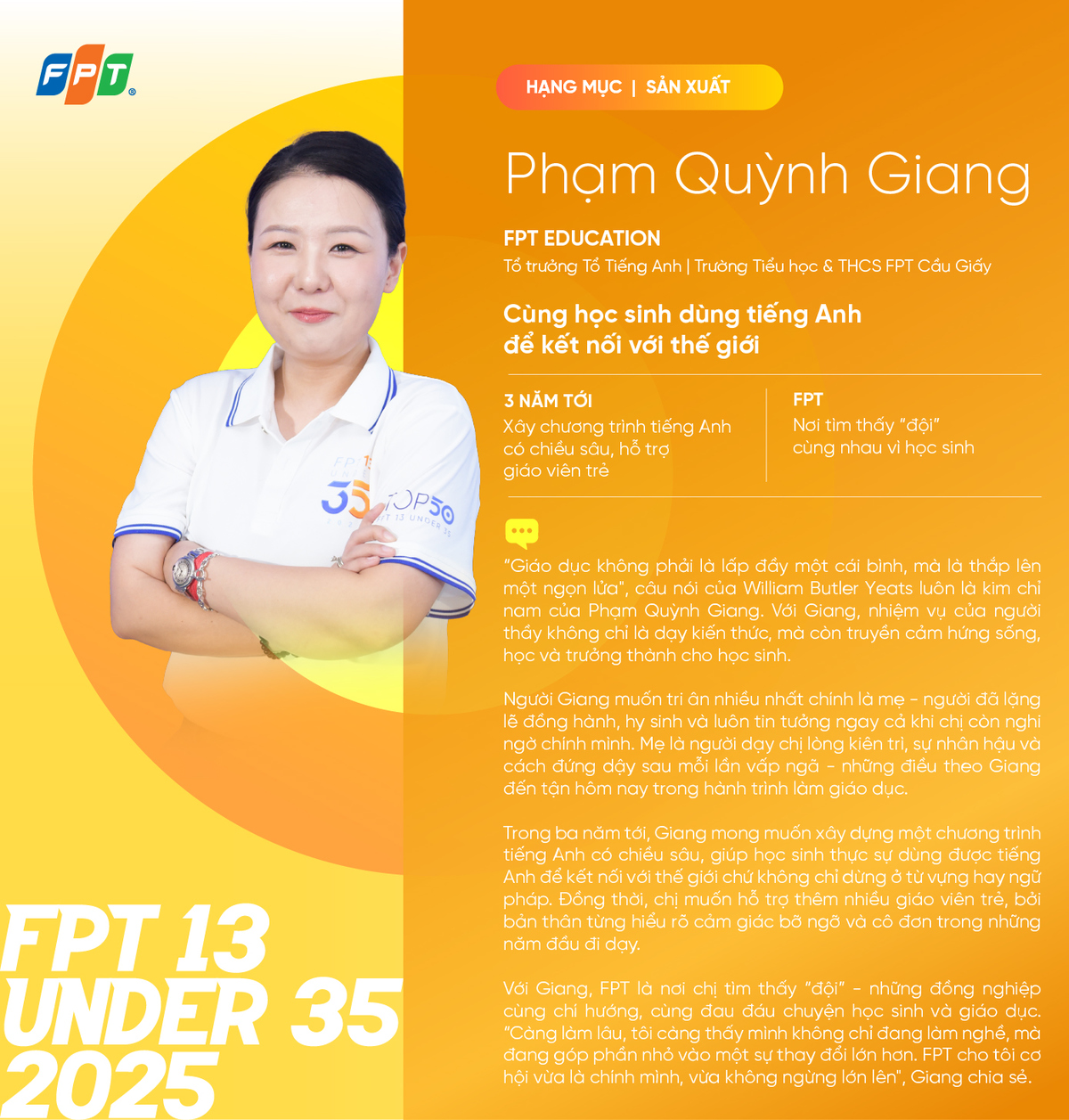 Thứ ba, 26/8/2025 | 09:35 GMT+7Cô giáo tiếng Anh mang cảm hứng sống, học tập và trưởng thành để giúp nhiều thế hệ học sinh tự tin hội nhập toàn cầu.