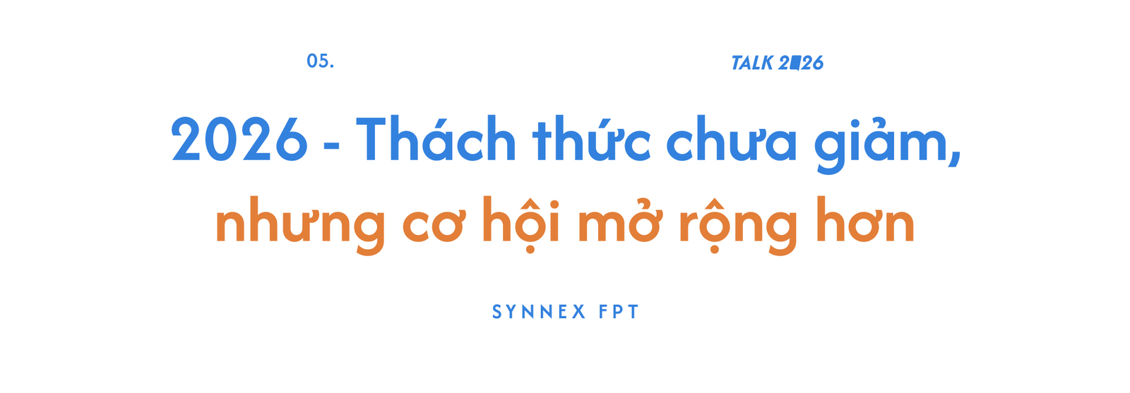 Với tôi, 2026 là một năm bản lề, nhiều thách thức nhưng cũng mở ra rất nhiều cơ hội. Vì vậy, thông điệp tôi muốn gửi tới đội ngũ Synnex FPT vẫn xoay quanh ba từ khóa: Chủ động - Sáng tạo - Đồng hành.