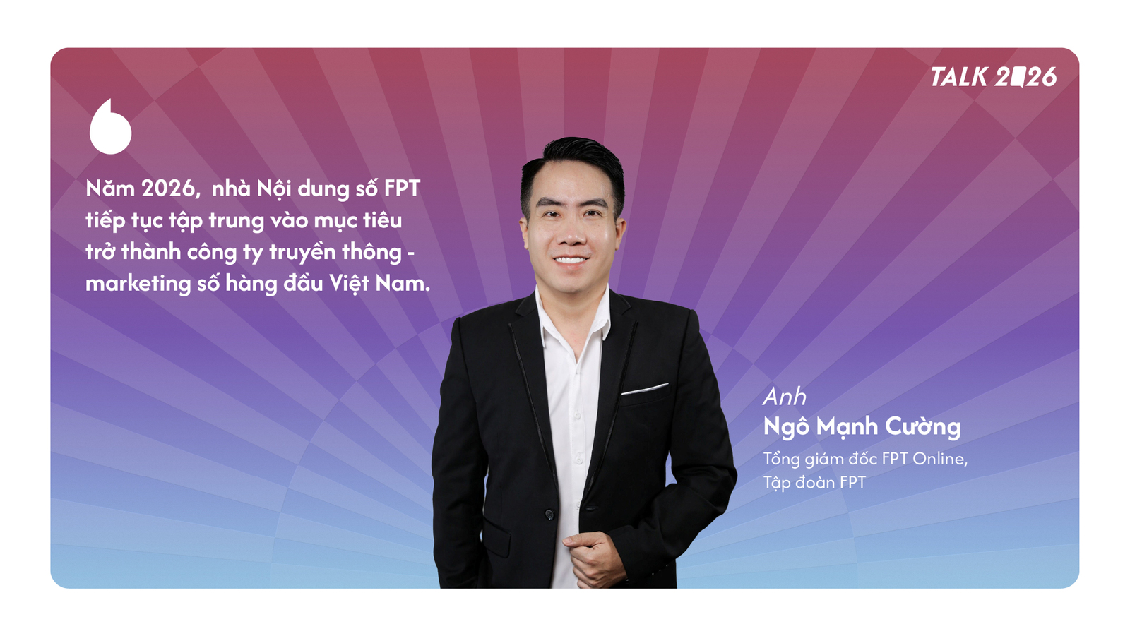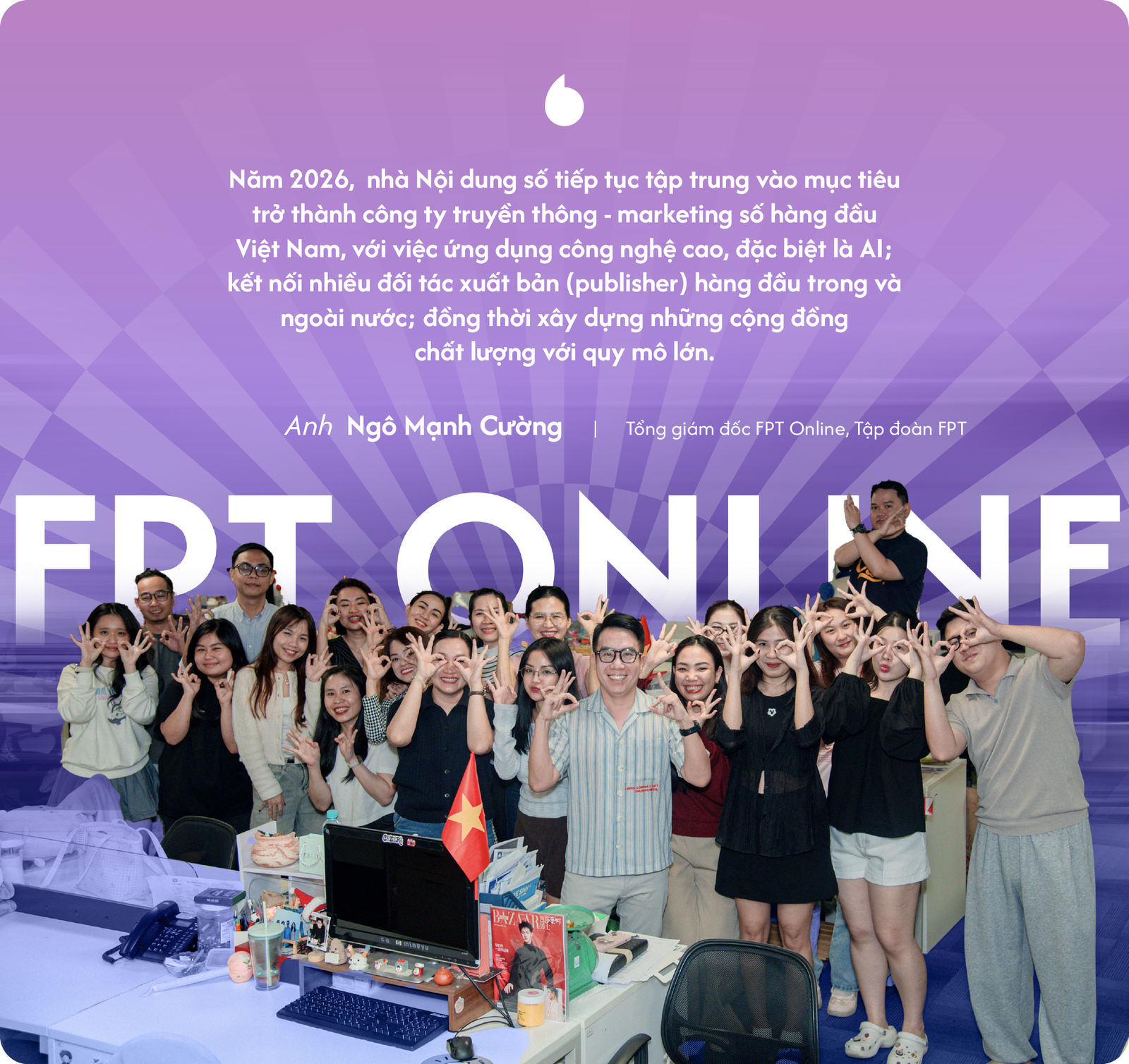 Năm 2026, FPT Online tiếp tục tập trung vào mục tiêu trở thành công ty truyền thông - marketing số hàng đầu Việt Nam.