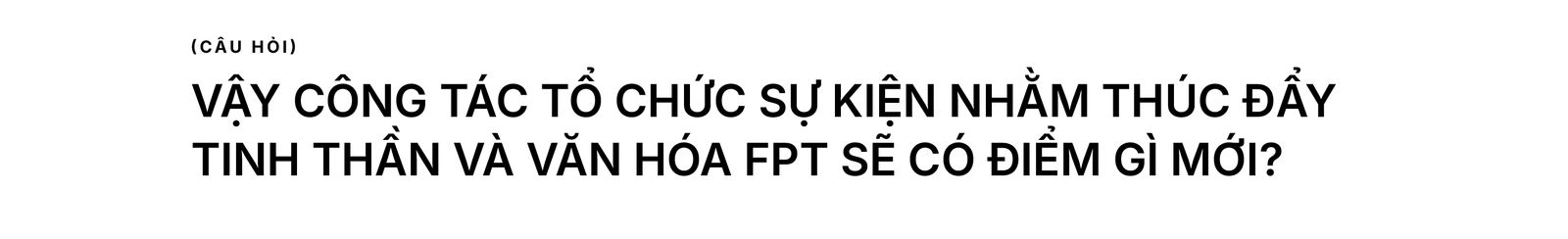 Đặc biệt, cần phải xét đến hiệu quả của hoạt động hay sự kiện đó mang lại. Chúng ta sẽ soi chiếu qua hệ giá trị mà FPT đang theo đuổi, đó là Tinh thần. Định nghĩa thế nào thì phức tạp lắm, nhưng đứng trên phương diện doanh nghiệp, tôi định nghĩa đơn giản thế này.