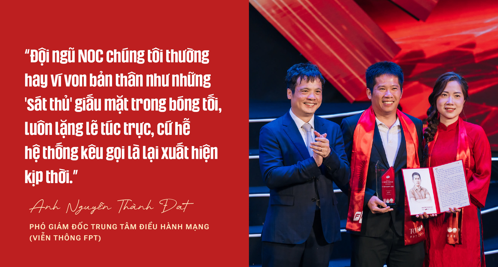 Đội ngũ NOC hay tự ví mình là "những sát thủ giấu mặt trong bóng tối": lặng lẽ túc trực, không ai nhìn thấy, chỉ xuất hiện khi hệ thống cần. Dù là sáng sớm hay đêm khuya, chỉ cần có sự cố phát sinh là anh em đều phải online ngay trong vòng 5 phút để xử lý, không kể ngày thường hay ngày lễ.