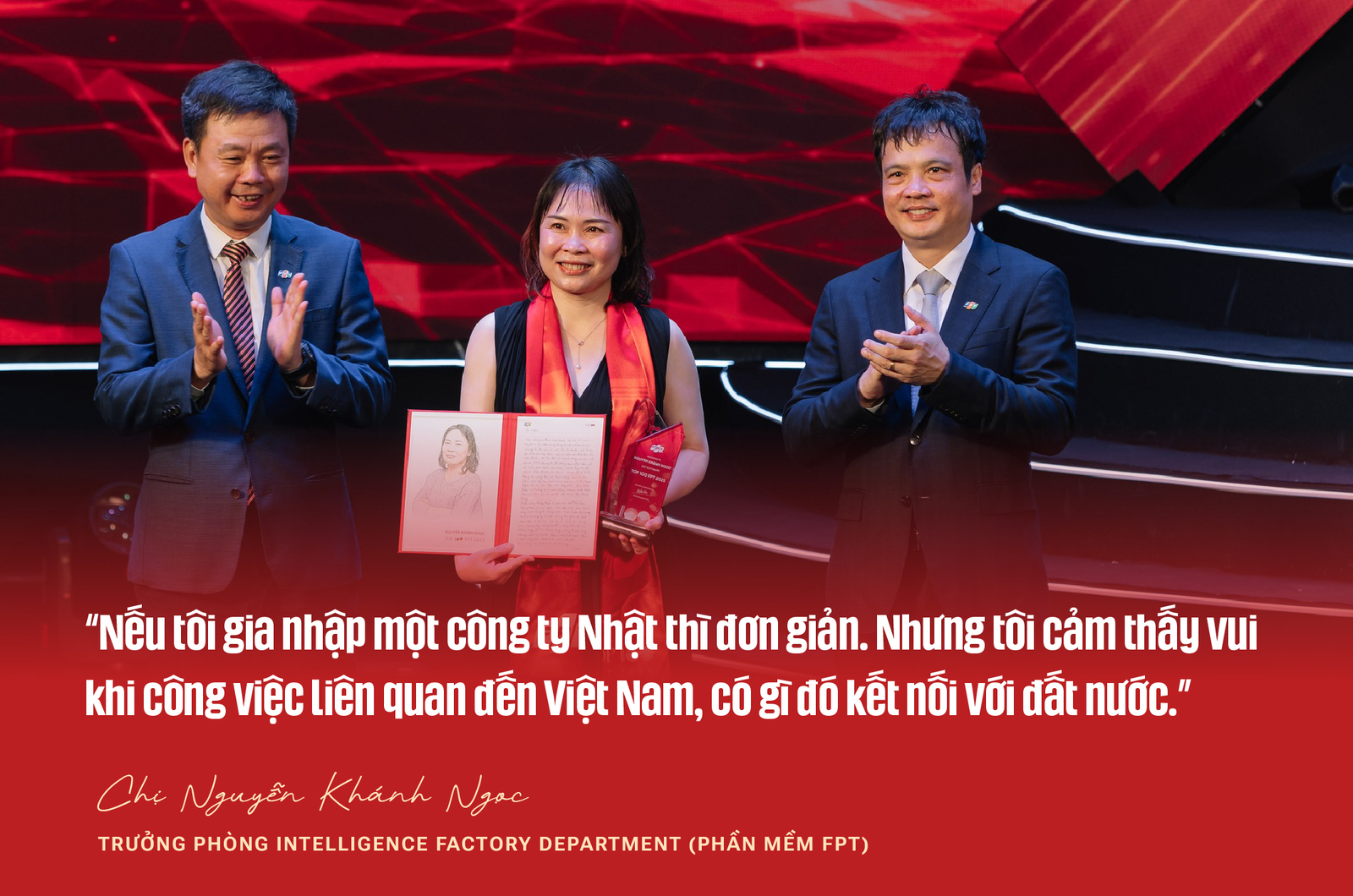 Chị Ngọc ở lại FPT đã 15 năm. Được hỏi tại sao không chuyển sang công ty Nhật, chị trả lời không cần suy nghĩ: “Nếu tôi gia nhập một công ty Nhật thì đơn giản. Nhưng tôi cảm thấy vui khi công việc liên quan đến Việt Nam, có gì đó kết nối với Việt Nam’’.