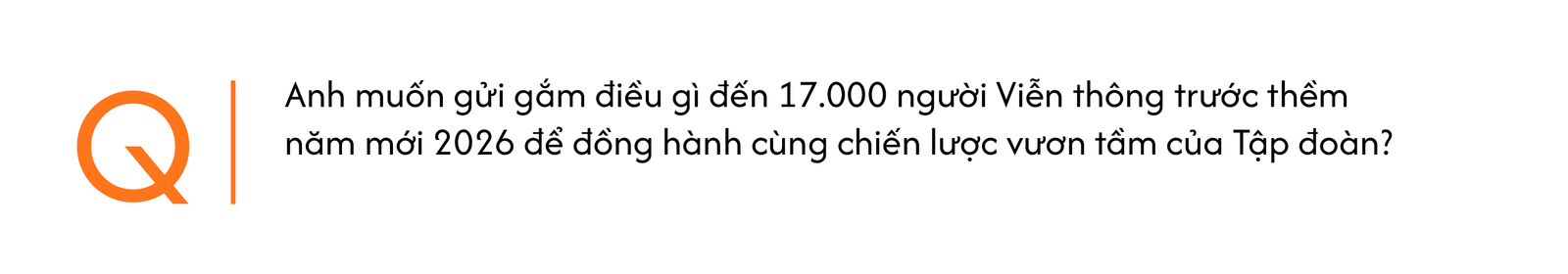 Nhìn lại năm 2025, tôi tự hào khẳng định rằng chúng ta đã cùng nhau hiện thực hóa thành công khẩu hiệu "Level Up" - nâng tầm vị thế của nhà Viễn thông một cách ngoạn mục bất chấp mọi nghịch cảnh. Bước sang năm 2026, với định hướng trở thành một doanh nghiệp vừa bảo vệ an ninh quốc gia, vừa bứt phá kinh doanh, chúng tôi tập trung "Raise Up" - Vươn mình.