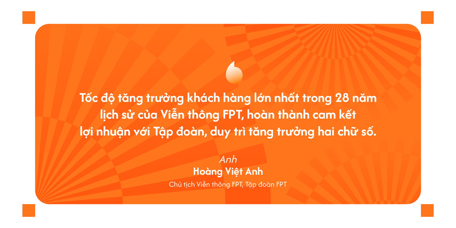 Những con số thực tế là minh chứng rõ nhất cho sức mạnh nội lực. Bất chấp thị trường bão hòa và thiên tai khắc nghiệt, FPT Telecom đã xác lập kỷ lục vô tiền khoáng hậu: Tốc độ tăng trưởng khách hàng lớn nhất trong 28 năm lịch sử. Cùng với đó, chúng tôi đã hoàn thành xuất sắc cam kết lợi nhuận với Tập đoàn và duy trì mức tăng trưởng hai chữ số.