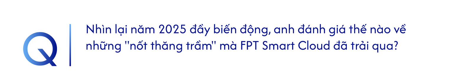 Năm 2025 với FPT Smart Cloud là một hành trình tràn đầy các cung bậc cảm xúc. Chúng tôi khởi đầu năm với sự kỳ vọng lớn khi các khoản đầu tư hạ tầng AI trọng điểm của Tập đoàn chính thức đi vào kinh doanh. Tuy nhiên, đến giữa năm, áp lực bủa vây từ nhiều phía: thị trường quốc tế biến động mạnh, trong khi các khách hàng chiến lược trong nước, đặc biệt là khối Ngân hàng chuyển sang tâm thế "chờ đợi" những giá trị đột phá.