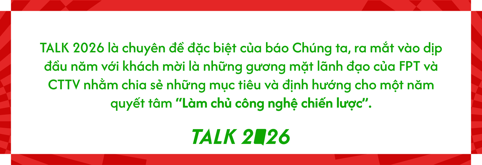 Tôi cho rằng năm 2026 là một năm của cơ hội. Việc lớn nhất mà chúng tôi phải vượt qua là đạt được mức tăng trưởng theo kế hoạch trong năm 2026. Khi FPT Sendo Farm hoàn thành mục tiêu đề ra, chúng tôi sẽ bắt đầu một chương mới: chương tăng trưởng, để đạt mục tiêu phục vụ 1 triệu bữa ăn cho hộ gia đình Việt mỗi ngày. Nhờ đó, FPT Sendo Farm sẽ có cơ hội tuyệt vời để mở rộng dịch vụ theo cách lành mạnh và có lợi nhuận, đồng thời đóng góp cho mảng kinh doanh mới của Tập đoàn.