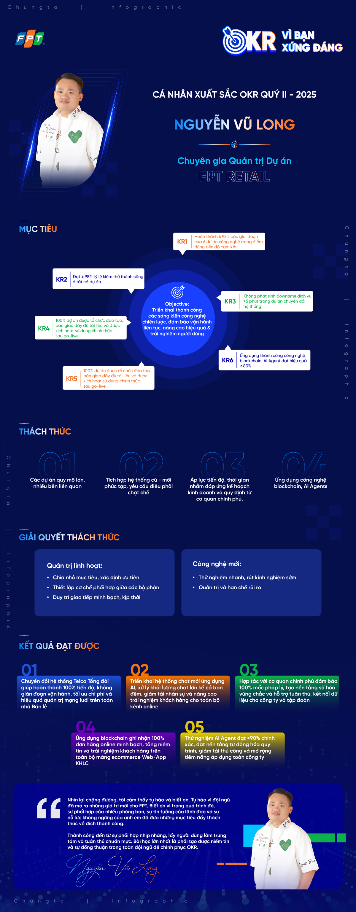 Anh Nguyễn Vũ Long cùng đồng đội chinh phục 5 dự án trọng điểm, tạo nền tảng bền vững giúp FPT khẳng định vị thế tiên phong trong công nghệ, tăng cường trải nghiệm khách hàng và mở ra hướng đi mới trong tương lai.